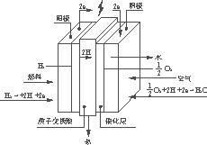 在陽極經(jīng)過質(zhì)子交換膜和催化劑的作用,其化學過程為: