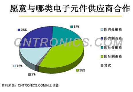 而同樣有四成以上的回復者選擇了具有本地化優(yōu)勢的國內(nèi)電子元器件制造商和分銷商作為合作伙伴。服務靈活、充分理解本地客戶需求和專注某些特定領(lǐng)域是國內(nèi)電子元器件制造商和分銷商的優(yōu)勢,如宇陽科技就是中國本地片式多層陶瓷電容器(MLCC)的新貴。隨著中國電子信息產(chǎn)業(yè)的發(fā)展,國內(nèi)電子元器件制造商和分銷商創(chuàng)新能力和管理的逐漸成熟,受到越來越多中小型企業(yè)的青睞。