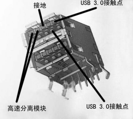 與USB 1.1升級(jí)到USB 2.0一樣,USB 3.0仍然采用USB 2.0相同的架構(gòu),向下兼容先前的即插即用USB版本,不管是USB 2.0還是USB 1.1設(shè)備,都能夠與USB 3.0接口的設(shè)備相兼容。從接口結(jié)構(gòu)來看,USB 2.0線纜使用了4條線的封裝設(shè)計(jì),所以USB 2.0接口使用了4個(gè)金屬觸點(diǎn),它們分別為+5V取電、數(shù)據(jù)-、數(shù)據(jù)+、GND接地。然而USB 3.0并非廣播總線,它在包頭中采用發(fā)送列表區(qū)段來進(jìn)行發(fā)包,上行接口提供分散式的USB 3.0互聯(lián),下行接口支持USB 2.0設(shè)備,從而用簡單的方法實(shí)現(xiàn)高速傳輸和兼容性并舉的雙重好處。