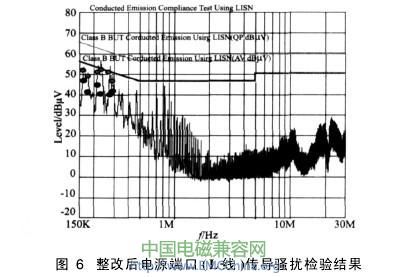 整改后的測試結(jié)果見圖6:整改后電源端口(L-線)傳導(dǎo)騷擾。