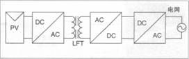 高頻隔離并網(wǎng)逆變器(如圖4)具有電氣隔離、體積、重量、成本降低等優(yōu)勢(shì),但系統(tǒng)效率只有90%—95%。