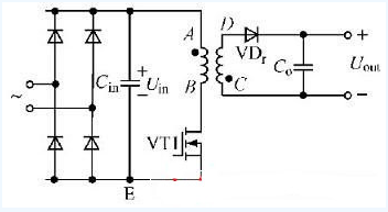 在圖1所示的反激式開關(guān)電源中,變換器工作于連續(xù)模式時(shí),開關(guān)管VT導(dǎo)通后,B點(diǎn)電位低于A點(diǎn),一次繞組匝間電容便會(huì)充電,充電電流由A流向B;VT關(guān)斷后,寄生電容反向充電,充電電流由B流向A。這樣,變壓器中便產(chǎn)生了差模傳導(dǎo)EMI。同時(shí),電源元器件與大地之間的電位差也會(huì)產(chǎn)生高頻變化。由于元器件與大地、機(jī)殼之間存在著分布電容,便產(chǎn)生了在輸入端與大地、機(jī)殼所構(gòu)成回路之間流動(dòng)的共模傳導(dǎo)EMI電流。