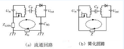 圖4變壓器中共模傳導(dǎo)EMI的流通回路