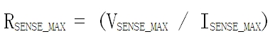 例如,如果通過檢測電阻的最大電流(ISENSE_MAX)預期為50mA,而高端電流檢測放大器所能接收的最大輸入電壓為250mV(VSENSE_MAX),則最大檢測電阻為5ohms (RSENSE_MAX)。