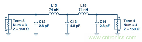 使用濾波器軟件,如MathCad,® MATLAB,® 或ADS來(lái)設(shè)計(jì)單端低通濾波器。