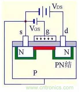 (1) VGS=0時,不管VDS極性如何,其中總有一個PN結(jié)反偏,所以不存在導(dǎo)電溝道。