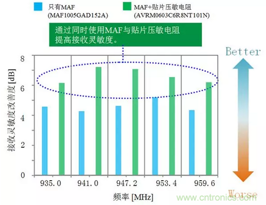 圖8:通過同時使用貼片壓敏電阻提高接收靈敏度的效果