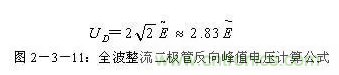 整流二極管D1和D2承受的反向峰值電壓為: