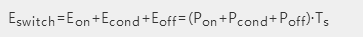 MOS管主要損耗:開關(guān)損耗,導(dǎo)通損耗,截止損耗,還有能量損耗,開關(guān)損耗往往大于后者,小部分能量體現(xiàn)在“導(dǎo)通狀態(tài)”,而“關(guān)閉狀態(tài)”的損耗很小幾乎為0,可以忽略不計。具體使用下面公式計算: