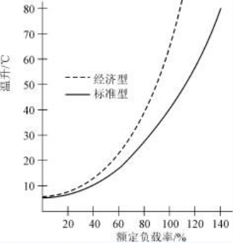 環(huán)形變壓器的溫升特性曲線示于圖6,從圖6 可看出環(huán)形變壓器的溫升是較低的,對(duì)標(biāo)準(zhǔn)型系列,即便是過(guò)載120%,溫升也不超過(guò)70℃。
