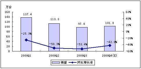 - 賽迪顧問預計,2008年第四季度,中國MP3/PMP市場銷量為134.0萬臺