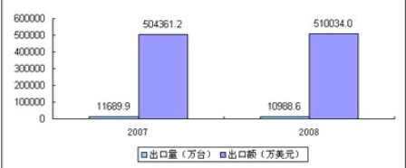 近年以來(lái),全球DVD播放機(jī)市場(chǎng)呈現(xiàn)相對(duì)飽和、增長(zhǎng)放緩。席卷全球的金融風(fēng)暴,高額的核心技術(shù)專利費(fèi),人民幣的升值,原材料價(jià)格持續(xù)上漲和勞動(dòng)力價(jià)格的上升等因素使國(guó)產(chǎn)DVD低成本的出口優(yōu)勢(shì)逐步減弱,因此,2008年1-10月DVD播放機(jī)出口市場(chǎng)呈現(xiàn)“量降價(jià)漲”的趨勢(shì),2008年1-10月出口為10988.59萬(wàn)臺(tái),同比下降6%,出口額為510034萬(wàn)美元,同比增長(zhǎng)1.1%。出口仍以O(shè)EM加工為主。