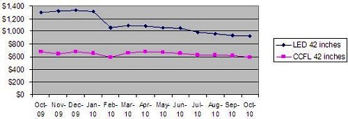 - LED背光液晶電視售價(jià)一年間共下跌44%