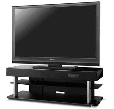 在實際應(yīng)用中,條形音箱主要置于平板電視下方。如下圖所示:
