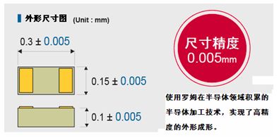 - 世界上最小的貼片尺寸0.3 mm×0.15 mm
