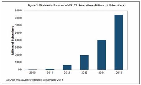 根據(jù)IHS iSuppli公司的智能手機與融合設(shè)備市場研究報告顯示,在移動網(wǎng)絡(luò)運營商的大力支持下,下一代4G無線標準——長期演進(LTE)在今年以及未來幾年將取得驚人的增長,增長率將高達數(shù)倍甚至數(shù)十倍,到2015年其用戶數(shù)量將達到相當可觀的水平。