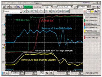 泰克8000B系列儀器中安裝有80E04電子采樣模塊,是成功測(cè)量串?dāng)_的理想儀器組合。80E04是一款雙通道采樣模塊,包含有一個(gè)TDR階躍電壓產(chǎn)生器,能產(chǎn)生上升時(shí)間為17ps的250mv窄脈沖,并以50歐姆的源阻抗輸出。測(cè)試人員只需連接待測(cè)PCB即可。