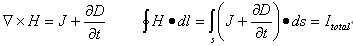 Maxwell的第四方程式也稱作Ampere定律。此方程式說明了產(chǎn)生磁場的兩個來源。第一個來源是,電流以傳輸電荷的形式在流動。第二個來源是,當(dāng)變動的電場環(huán)繞著一個封閉的電路時,會產(chǎn)生磁場。這些電和磁的來源,說明了電感和電磁的作用。在此方程式中,J就代表以電流產(chǎn)生磁場的分量;就是以電場產(chǎn)生磁場的分量。