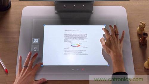 第一代的惠普 Sprout 在機身頂部有一組攝像頭和投影儀,可將操作界面投射到集成在底座部分的觸摸板上,能夠?qū)崿F(xiàn)觸摸、3D 掃描等操作。惠普公司將其稱為“混合現(xiàn)實”。由于惠普公司將這一產(chǎn)品定位在家庭娛樂與創(chuàng)造方面,這一產(chǎn)品并沒有吸引到更多的目光。