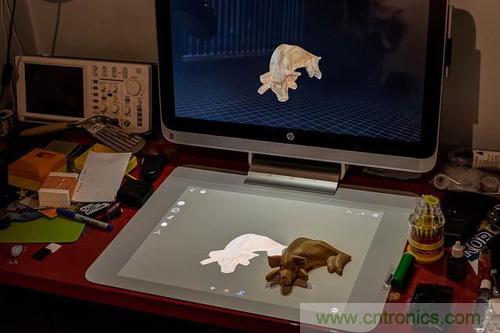 屏幕支架上方的是包含掃描儀相機的投影儀,允許在 Touch Mat 上盡可能直觀的使用。盡管 Touch Mit 本身并非觸控屏幕,但通過這些設備的交互能夠投影圖片并進行相應的觸控交互。Sprout Pro 正面裝備了支持 3D 眼鏡的 23.6 英寸 Zvr顯示器,同時支持虛擬現(xiàn)實和增強現(xiàn)實。