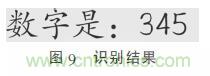 圖9為本系統(tǒng)對(duì)圖2的識(shí)別結(jié)果,可以看到,該系統(tǒng)可以快速實(shí)現(xiàn)液晶屏數(shù)字的識(shí)別。