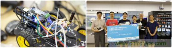 大賽的另一個關(guān)注點(diǎn)來自一支名叫“老少爺們兒”的參賽隊(duì)伍,之所以叫這個名字是因?yàn)樵撽?duì)除了有年紀(jì)較大的中年人,還有本次大賽年紀(jì)最小的選手。這只隊(duì)伍的參賽項(xiàng)目是“神經(jīng)元探索車”,他們采用Genuino 101(神經(jīng)元)模塊,通過Wi-Fi來控制帶視屏和抓手的小車,實(shí)現(xiàn)遠(yuǎn)程取物排障。小選手現(xiàn)場非常積極、投入,與年齡比自己大很多的隊(duì)友團(tuán)結(jié)協(xié)作,親自動手制作,最終,他們獲得西門子創(chuàng)客大賽入場券。