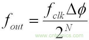 (1)式中,fclk為參考時鐘頻率,ΔΦ為相位增量,N為相位累加器的位數(shù)。只要N足夠大,DDS可以得到很小的頻率間隔。要改變DDS的輸出信號的頻率,只要改變ΔΦ即可。當(dāng)參考時鐘頻率給定后,輸出信號的頻率取決于頻率的控制字,頻率分辨率取決于累加器的位數(shù),相位分辨率取決于ROM的地址位數(shù),幅度量化取決于ROM的數(shù)據(jù)字長和D/A轉(zhuǎn)換器的位數(shù)。