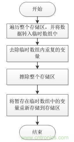 通過這些步驟,將存儲(chǔ)區(qū)中存儲(chǔ)的變量讀出,并將存儲(chǔ)區(qū)中的重復(fù)的無(wú)效數(shù)據(jù)清除。下面是源代碼: