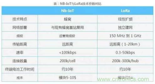 NB-IoT、LoRa成本對比