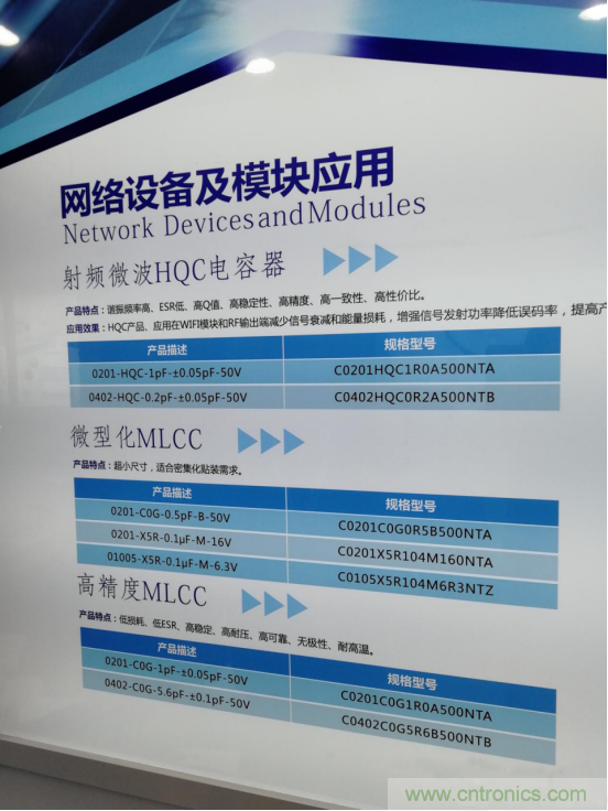 在展區(qū),宇陽科技展示了各種應(yīng)用的電容,如網(wǎng)路設(shè)備及模塊應(yīng)用射頻微波HQC電容器、手機(jī)應(yīng)用中超微型MLCC、用于安防產(chǎn)品高溫型MLCC、用于汽車電子應(yīng)用中的高容MLCC等。