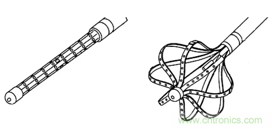 一種電生理學(xué)導(dǎo)管,在心臟中可展開和伸縮,具有64個(gè)電極。