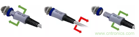 為提高安全性,IEC規(guī)定了鎖定機(jī)制,防止在醫(yī)療過程中意外斷開。鎖定機(jī)構(gòu)通常與電氣連接空間相沖突,有多種形式,如按鈕鎖定(拇指鎖存)、扭轉(zhuǎn)鎖定(通過旋轉(zhuǎn)鎖?。┮约傲餍械耐评i定系統(tǒng),推拉鎖定系統(tǒng)將閉鎖設(shè)計(jì)集成到咬合結(jié)構(gòu)中,消除了其他選項(xiàng)所需的二次動(dòng)作,緩解它們所面臨的設(shè)計(jì)挑戰(zhàn)。