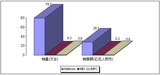 - 2008年Netbook市場(chǎng)銷售量為79.7萬臺(tái),銷售額達(dá)到28.1億元