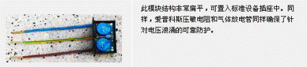 除移動模型之外,3Pi–Innovationen.de同樣為固定安裝提供了一個版本。憑借愛普科斯圓片形壓敏電阻和氣體放電管的緊湊設(shè)計,上述模塊(如圖)的結(jié)構(gòu)極其扁平,可以輕松插入電源輸出端的標準型小尺寸設(shè)備插座中。