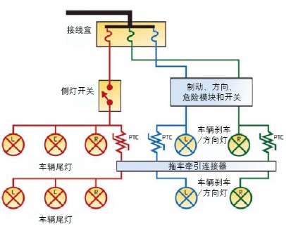 減輕了拖車牽引燈電路的導(dǎo)線重量