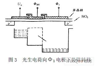 (1)工作原理。 TCD1206UD 在圖2 所示的驅(qū)動脈沖作用下工作。當(dāng)ΦSH 脈沖的高電平到來時,正值Φ1 電極下均形成深勢阱,同時ΦSH 的高電平使Φ1 電極下的深勢阱與MOS 電容存儲勢阱溝通。