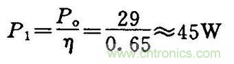 開(kāi)關(guān)電源的效率η一般在60~90%之間,本例取η=0.65,則輸入功率為