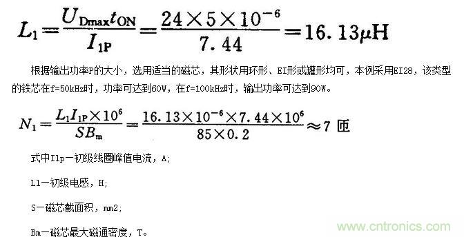 (1)即使輸入電壓最大,主開(kāi)關(guān)器件導(dǎo)通時(shí)間最長(zhǎng),也不至于使變壓器的磁芯飽和;