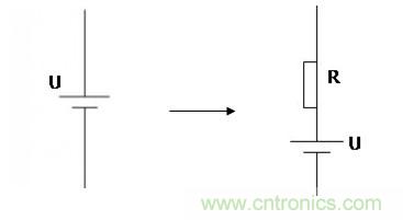 實(shí)際電路中,電源存在內(nèi)阻,相當(dāng)于串聯(lián)一個(gè)電阻,此時(shí)輸出電壓就會(huì)有所下降,對電路中的干擾不可忽略。