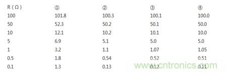 對(duì)測(cè)量結(jié)果的比較可以看出,對(duì)于100Ω的電阻,普通數(shù)字萬(wàn)用表的測(cè)量相對(duì)誤差在2%左右,隨著電阻值變小,未經(jīng)過(guò)改進(jìn)的數(shù)字電源萬(wàn)用表的測(cè)量誤差越來(lái)越大,原因主要是饋線電阻的影響;經(jīng)過(guò)處理的數(shù)字表,測(cè)量5Ω電阻的相對(duì)誤差在2%以下,但受恒流源電流本身穩(wěn)定度的影響,②、③測(cè)量結(jié)果的準(zhǔn)確度也不一樣;而饋線補(bǔ)償法測(cè)量誤差最小,不管饋線電阻大小如何,其測(cè)量0.1Ω的相對(duì)誤差都低于10%。