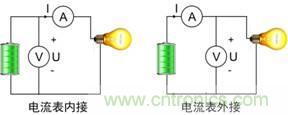 下圖分別顯示了電流表內(nèi)接和外接兩種接法。