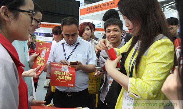 電子商務(wù)平臺(tái)的崛起,也使得營(yíng)銷手段更加花樣百出地貼近消費(fèi)者,再也不是以前坐等顧客上門挑選的被動(dòng)局面,分銷商在展館里可謂是使出十八般武藝,力圖能激起消費(fèi)者翻牌的欲望。這不,原先四處走動(dòng)的觀眾,瞬間被抽中一百塊現(xiàn)金紅包的歡呼聲給吸引了過去,筆者也前往一探究竟,原來是華強(qiáng)電子網(wǎng)的展位上進(jìn)行的免費(fèi)認(rèn)證超級(jí)買家抽紅包的活動(dòng)。