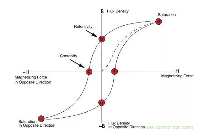 增加磁芯的磁導(dǎo)率,可以提高電感值,通常使用鐵磁性材料做磁芯。鐵磁性材料存在磁飽和現(xiàn)象,即當(dāng)磁場強度超過一定值時,磁感應(yīng)強度不在增加,即磁導(dǎo)率下降了,也就是電感下降了。在額定電感值范圍內(nèi),允許的最大電流即為飽和電流。