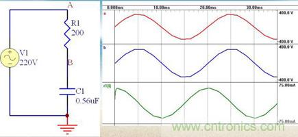 電容器實際上起到一個限制電流和動態(tài)分配電容器和負(fù)載兩端電壓的角色。