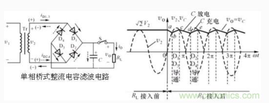 2 .開關(guān)S閉合,即為電容濾波電阻負載,當變壓器付邊電壓大于電容上電壓時