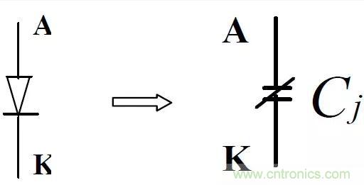 二極管反向截止時可用一電容等效,其容量與所加的反向電壓、環(huán)境溫度等有關(guān),大小可從制造商的手冊中獲得。