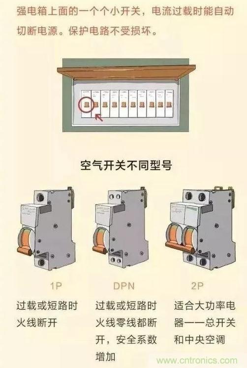 空氣開(kāi)關(guān)是用來(lái)保護(hù)全家電路的,當(dāng)我們的電流過(guò)大的時(shí)候會(huì)引發(fā)開(kāi)關(guān)自動(dòng)切斷電源。