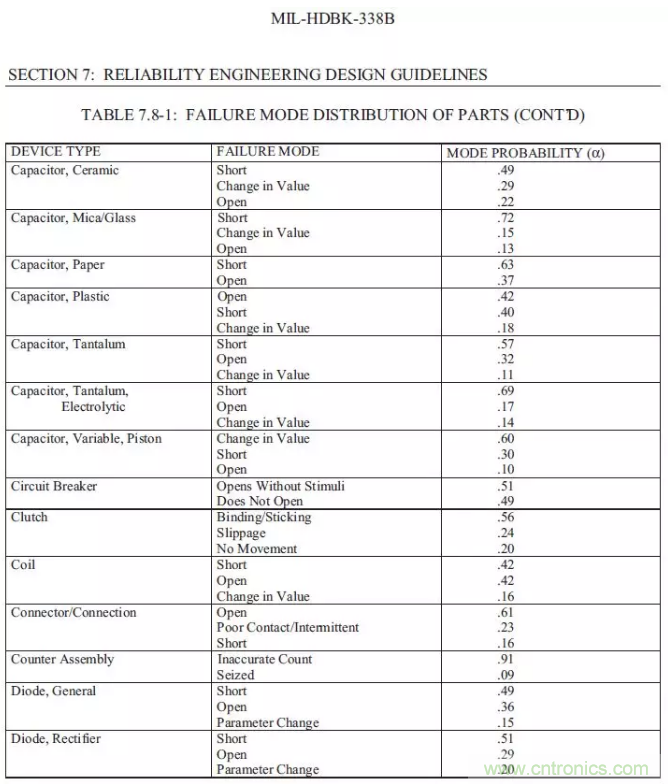 【導讀】以下總結摘錄MIL-HDBK-338B,美軍可靠性設計手冊來為FTA(故障樹)做一些支持。如果我們想要進行FTA的定量分析,一定要把可靠性預測先做完,在可靠性前一定要把電壓分布表和溫度分布先進行初步的運算,通過下面的的表格,大概可以預計失效發(fā)生的時候故障的分配比例。