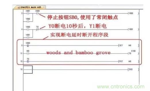 當然實現(xiàn)斷電延時斷開的編制方法很多,這里不再一一例舉。