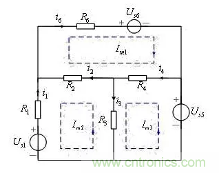 即為該電路的網(wǎng)孔方程,顯然,由此三個方程,可求解網(wǎng)孔電流。